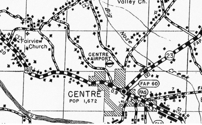 Talladega's first airport was located adjacent to the southwest side of the town.