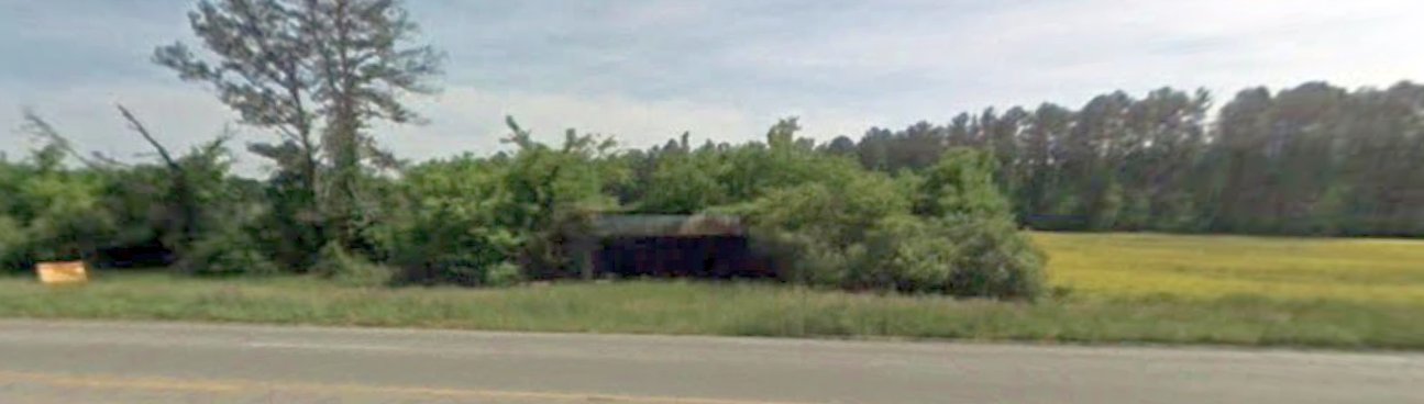 A May 2022 photo looking southeast at the former Camp Hill Airport hangar.