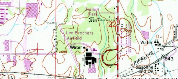 Lee Brothers Airfield, as depicted on the 1953 USGS topo map (courtesy of Dallam Oliver-Lee).