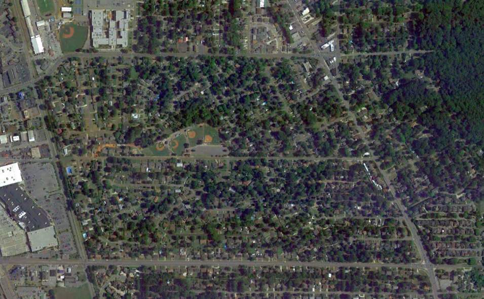 A 2024 aerial view looking northeast shows no trace remained of Palmer Field.