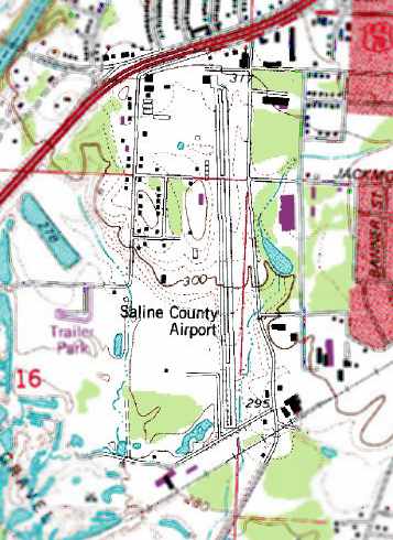 The 1988 USGS topo map (courtesy of Devan Mayer) depicted Saline County Airport as having a single paved north/south runway.