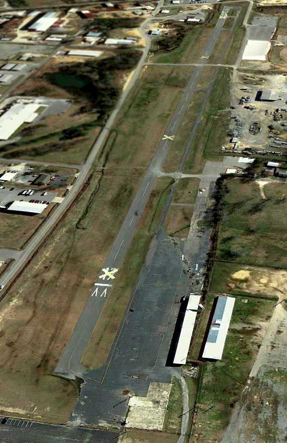 A 2007 photo looking south at the runway & hangars of the original Saline County Airport after its closure.