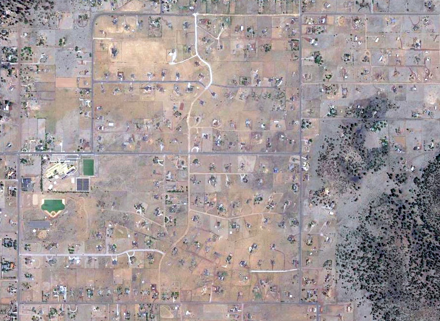 The site of the original location of Tuba City Airport is occupied with a smattering of houses, with no trace recognizable of the airport.