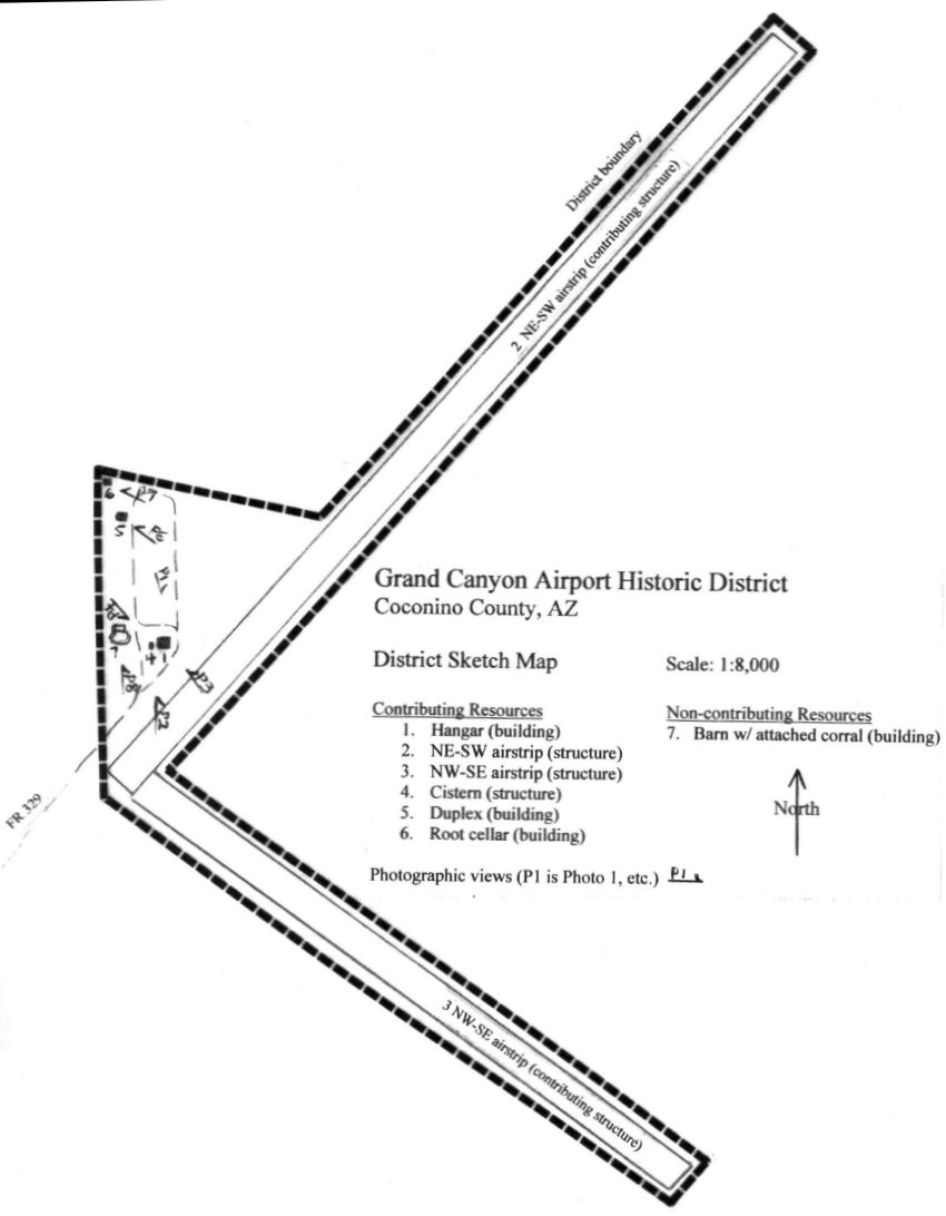 depicted Grand Canyon Airport as having 2 runways & the hangar & other buildings on the west side.