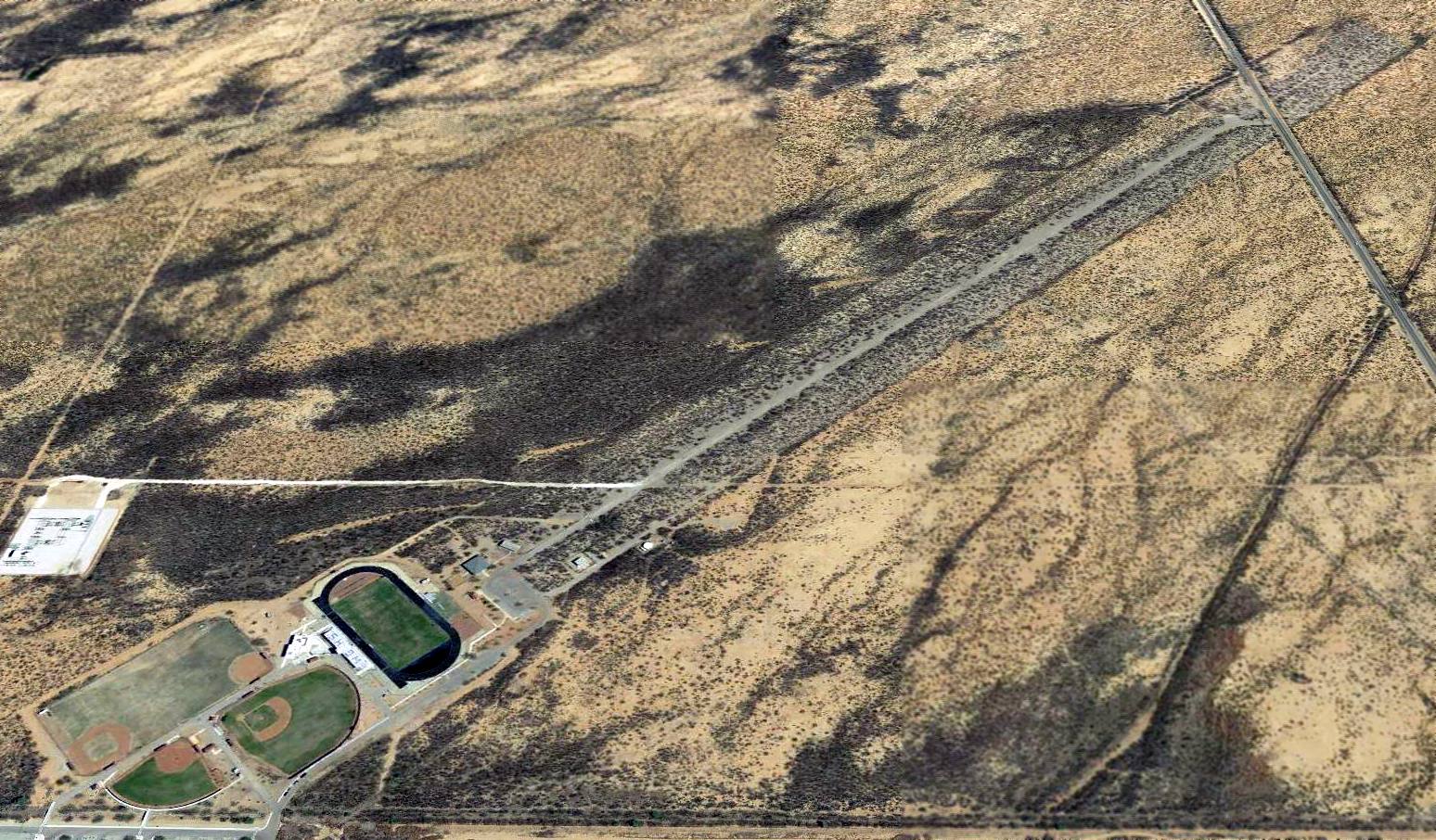 A 2017 aerial view looking east along the remains of the Sahuarita runway, showing the park built over the northeastern end.