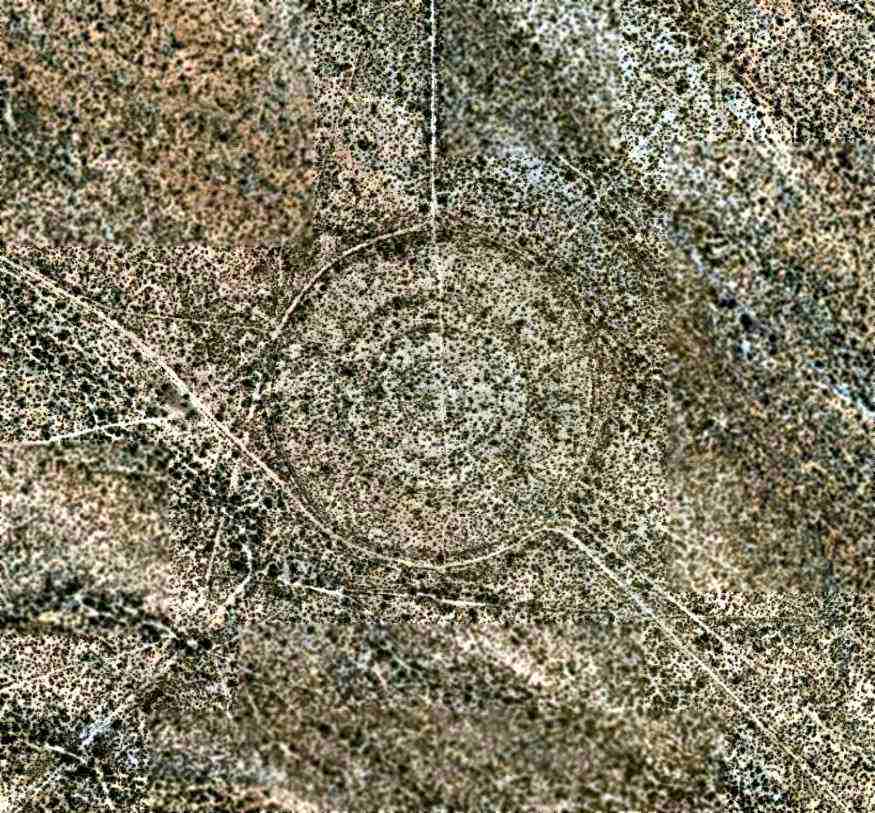 A May 2005 aerial view (courtesy of Robert McHugh) of a circular bomb target which sits 2.3 NM southeast of the end of the Sahuarita runway.