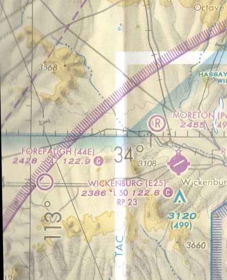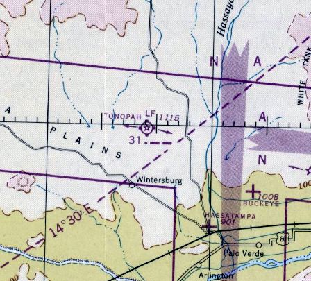 To confuse matters somewhat, the separate "(Municipal) Wickenburg" Airport was also depicted several miles to the east, adjacent to the northwest side of the town of Wickenburg.