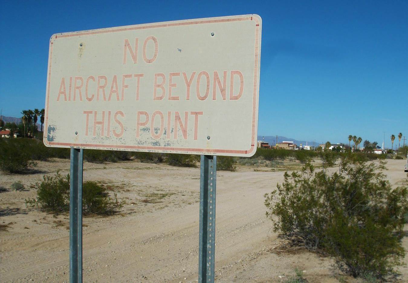 A 1999 photo by Rick Jackson of a sign in front of one of the former Quartzsite Airport runways.