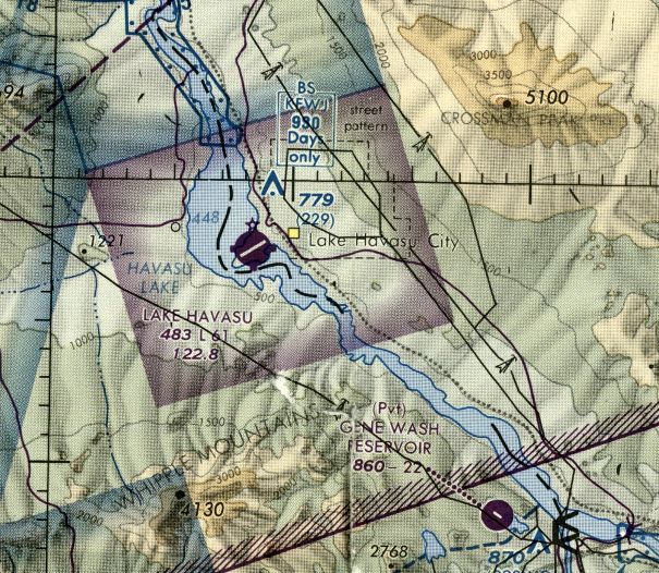 The original Lake Havasu Airport was depicted as an abandoned airfield on the 1993 Phoenix Sectional Chart (courtesy of Ron Plante).