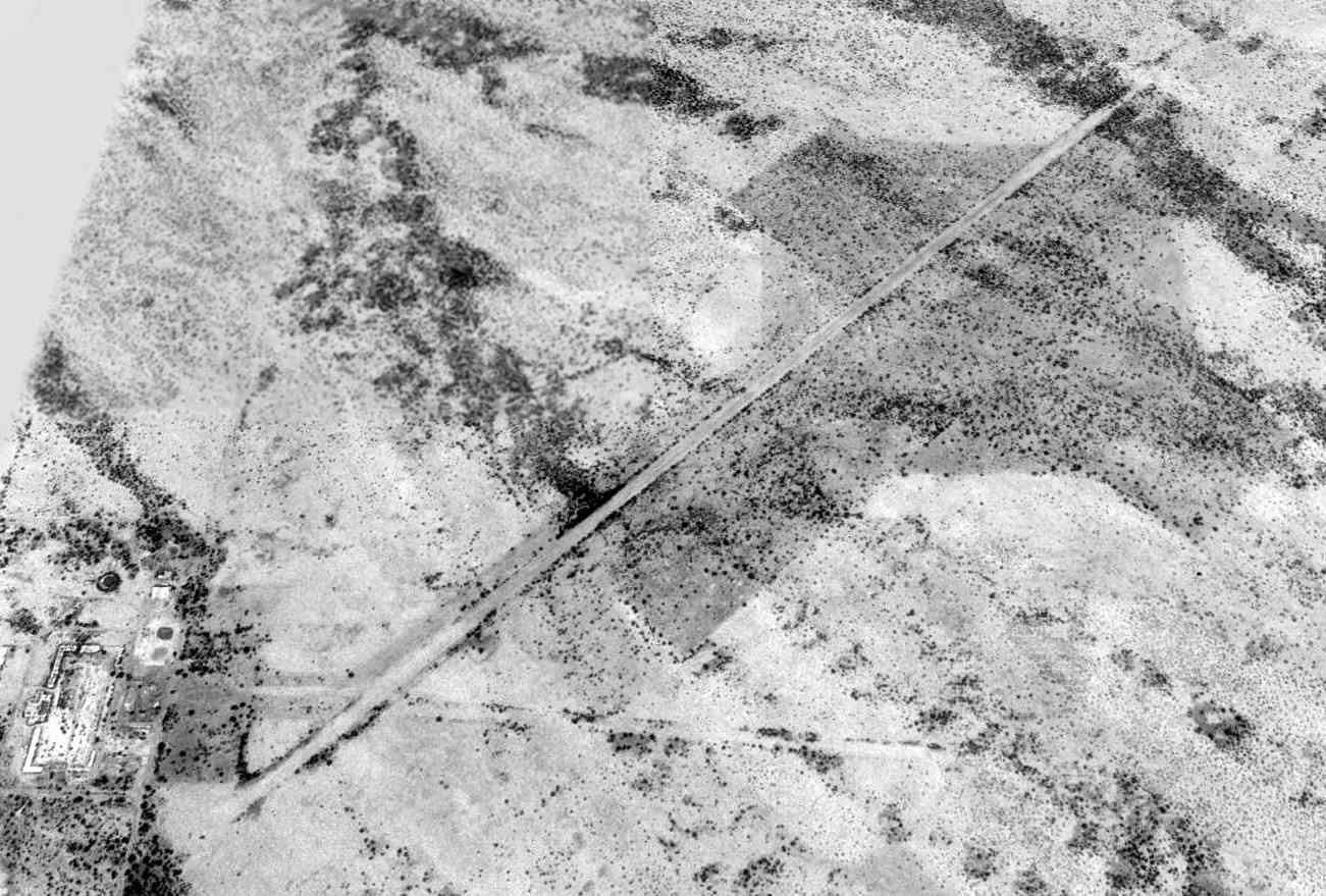 Cameron Shepherd observed in 2014, “The light-colored concrete runup area at the base of main Runway 5/23 still exists.