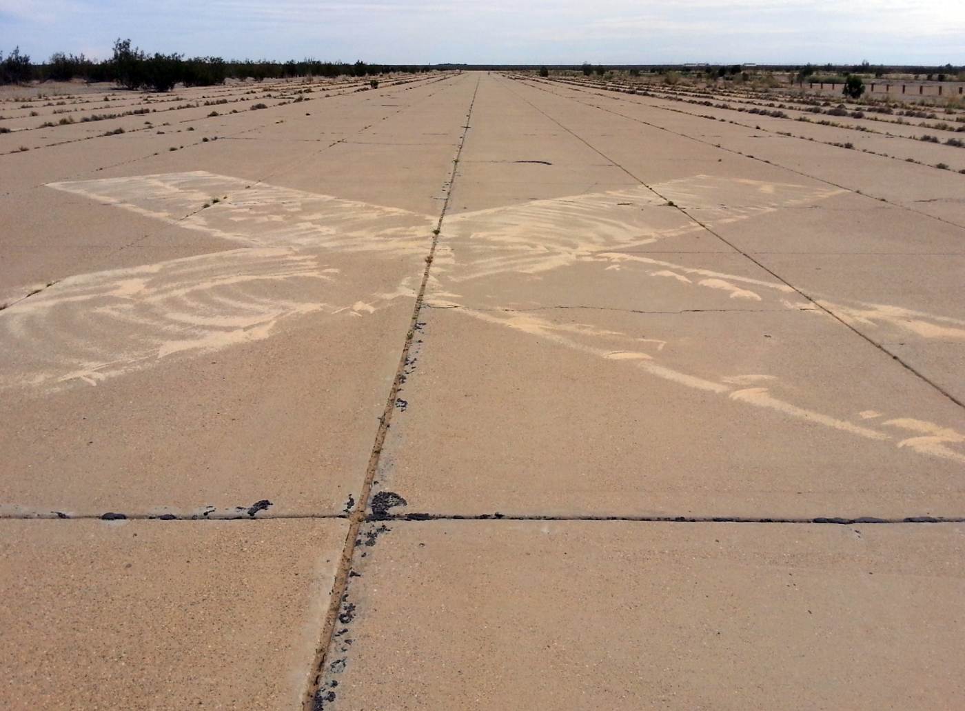 A January 2007 photo by Kurtis Clark (enhanced by Bill Grasha) looking along the remains of the single runway on the west side of NAS Salton Sea (also referred to as the AEC airfield).