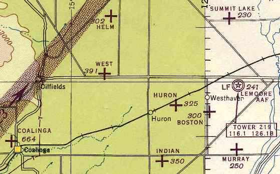 A 1945 aeronautical chart (courtesy of Dan MacPherson) depicted Coalinga as an auxiliary airfield.
