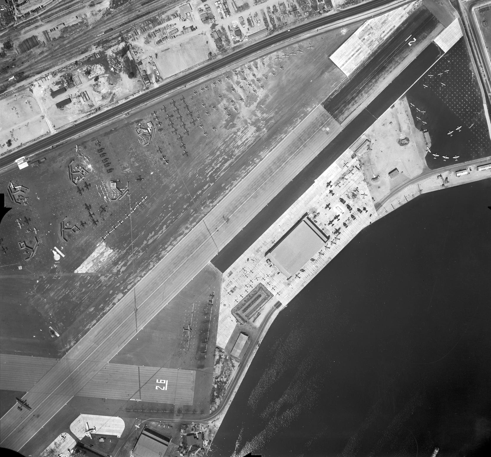 A 1945 aerial view looking southwest at NAS Terminal Island (National Archives photo).
