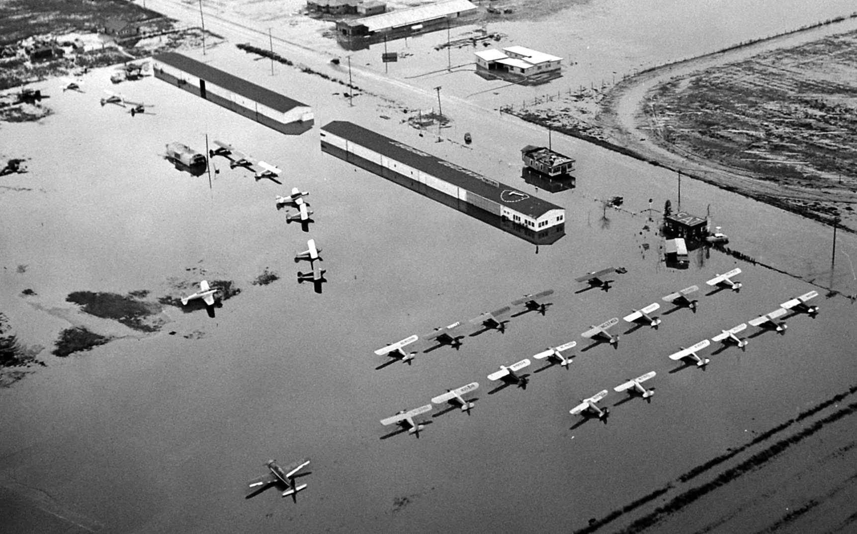 A 1964 aerial view looking southwest (courtesy of Kevin Walsh) showed Reeves Field remained intact.