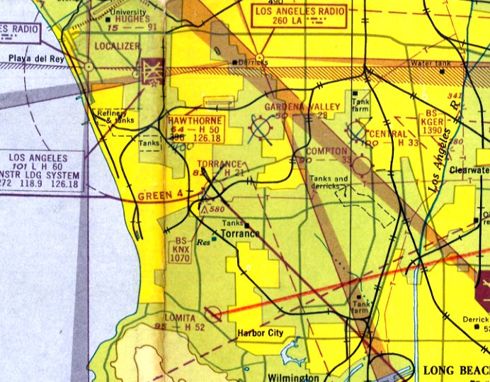 The earliest aeronautical chart depiction which has been located of the Torrance Airport was on the 1947 LA Local Aeronautical Chart (courtesy of Tim Zukas).