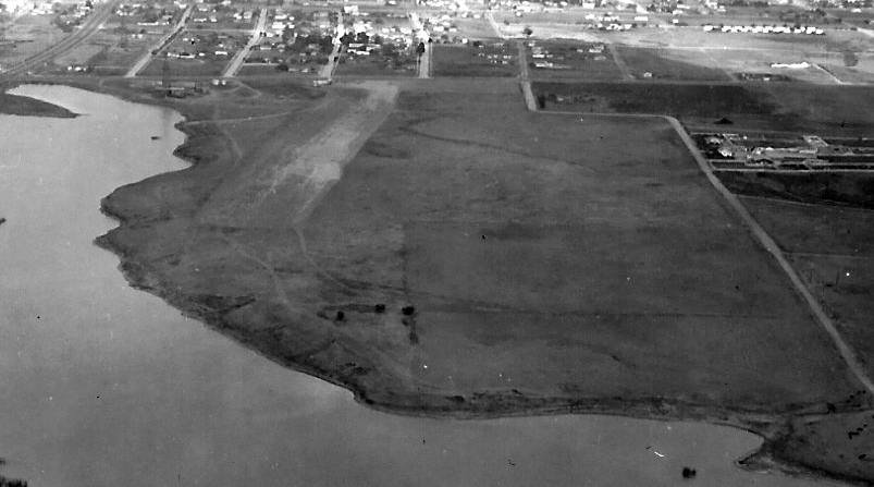 At my uncle's memorial in 2009, his friend Bill Green shared with me flights with George off this runway crossing over Bixby Slough (Harbor Lake today)