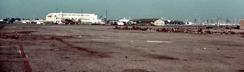 A 1980 aerial view showed that 3 large hangars still remained standing on the south side of the former Terminal Island airfield.