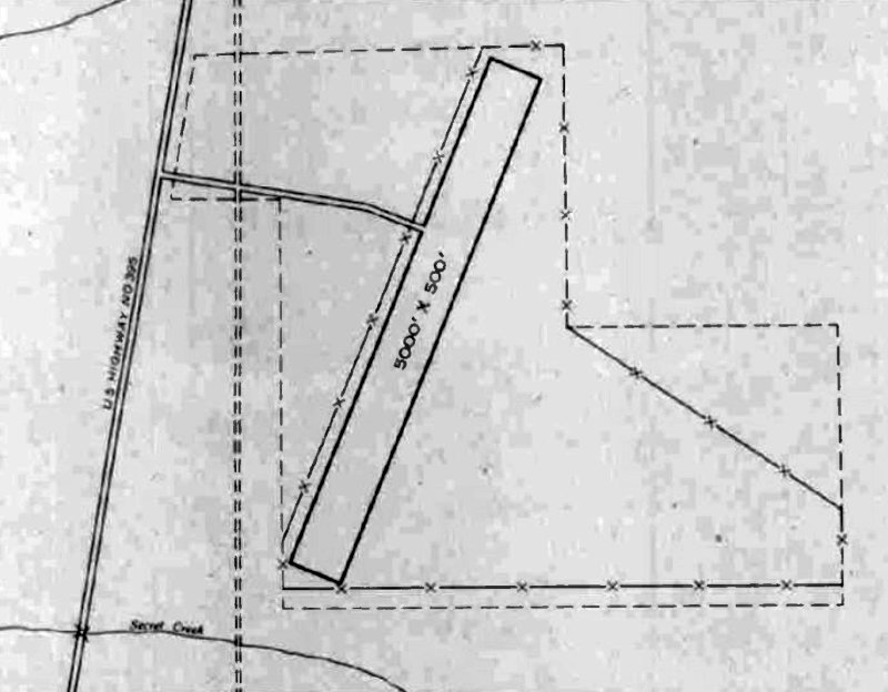 The 1945 AAF Airfield Directory (courtesy of Scott Murdock) depicted Secret Valley Intermediate Field as having a 5,000' bare northeast/southwest runway, with no other improvements.
