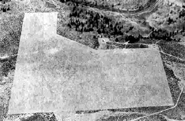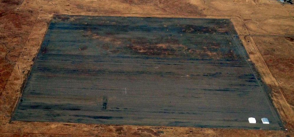 A 2006 aerial view by Dann Shively, showing the edge (almost indistinguishable) of the Oroville landing mat.