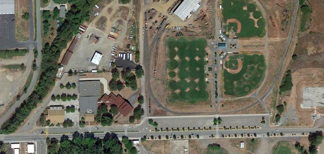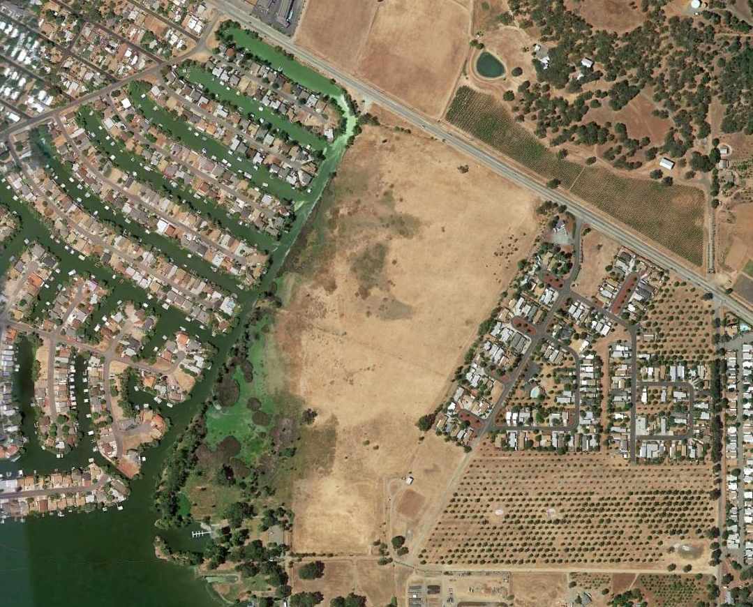 A 2015 aerial view looking south at the site of Redding Sky Ranch