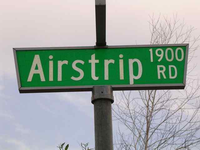 A 2004 photo by Dann Shively of a street sign for Airstrip Road.