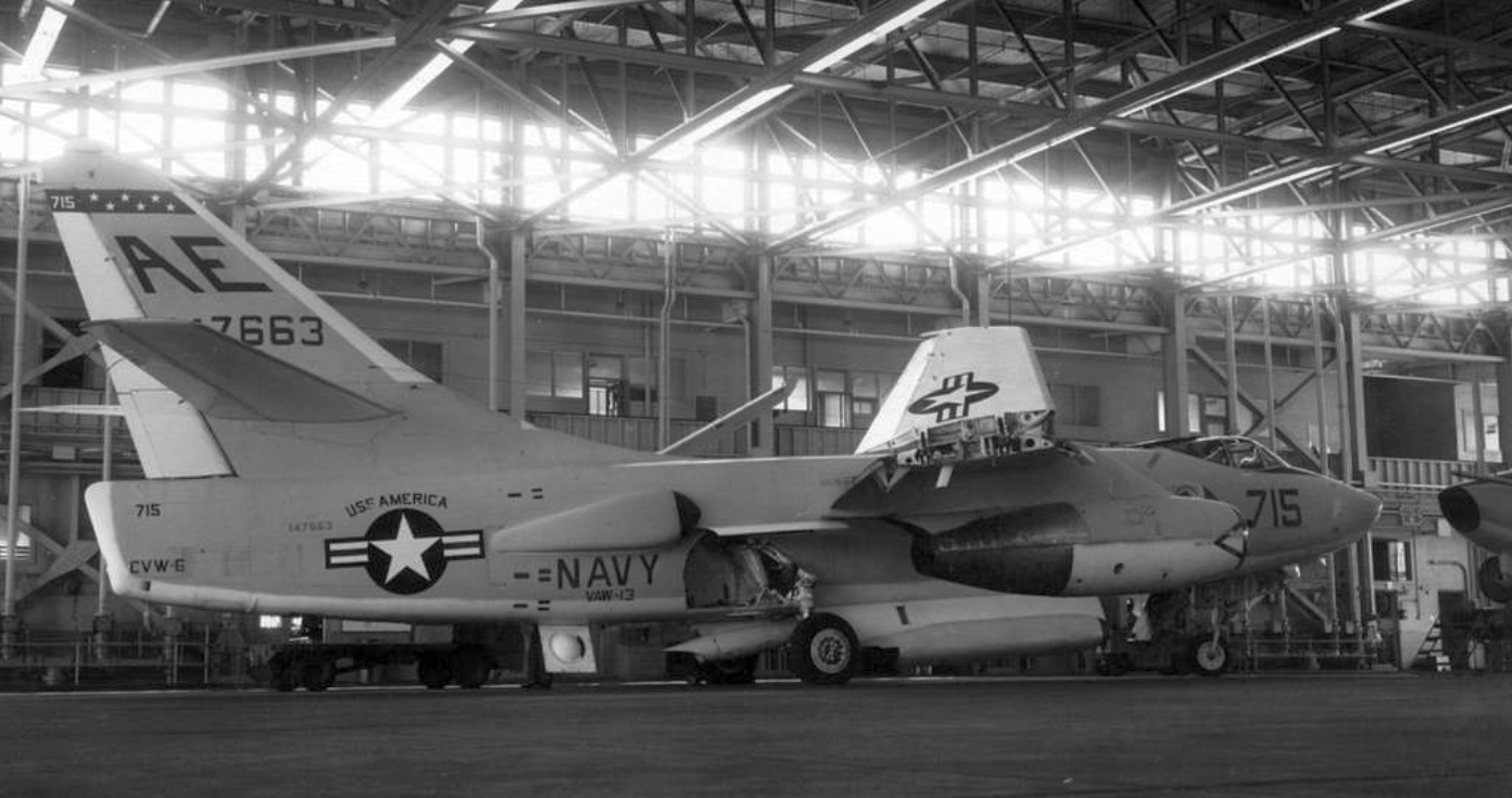 A 5/11/16 photo by Kevin Walsh of the heavily-loaded Vought A-7 mounted on a pylon at Alameda.
