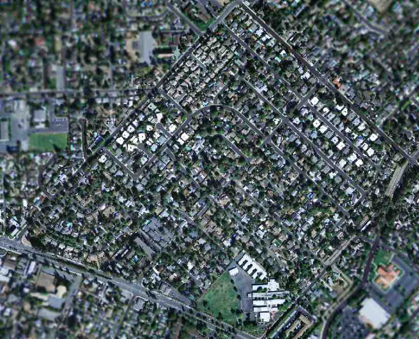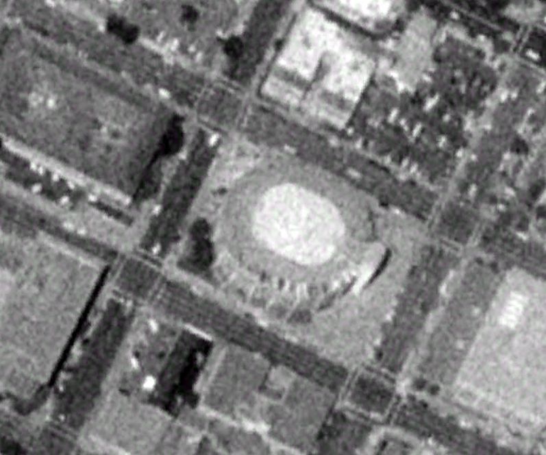 A 2022 aerial photo showed the site of Durant Field covered by dense buildings.