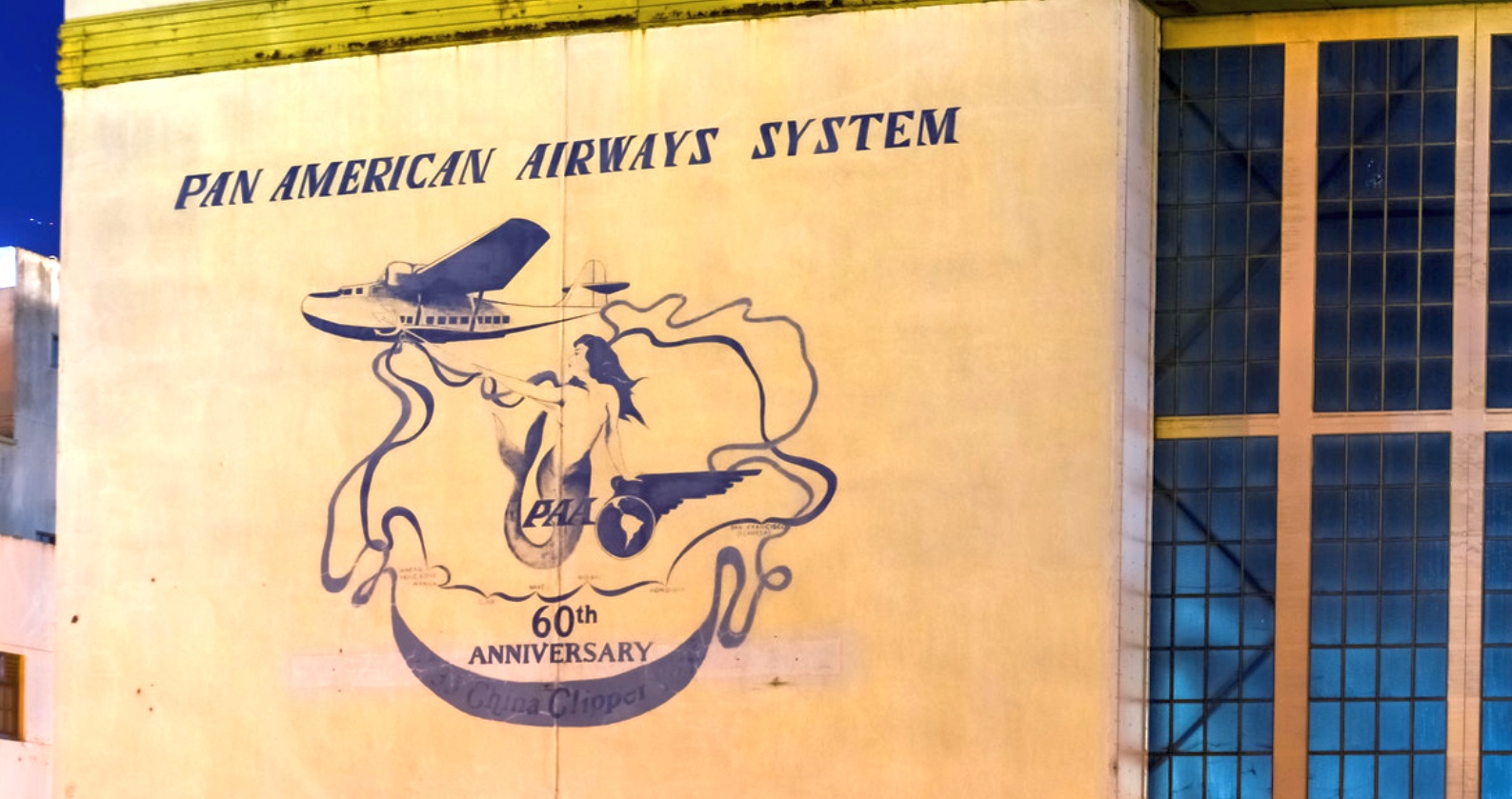 Tim Tyler reported, "The Pan American Airways System artwork is on the side of one of the old hangars behind the old Air Terminal building.