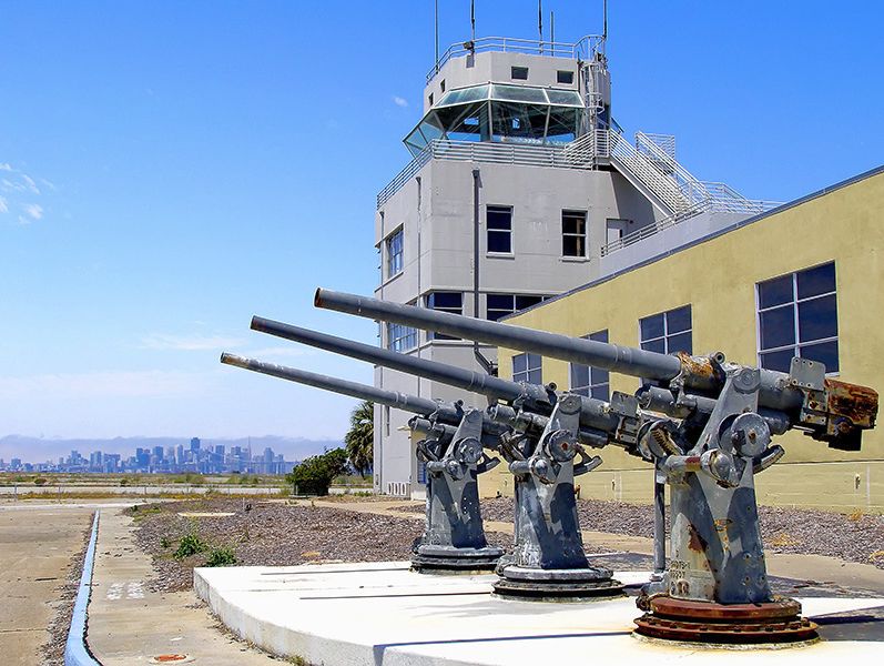 A 6/23/06 photo of 3 Mk.22 naval guns mounted in front of Alameda's former control tower.