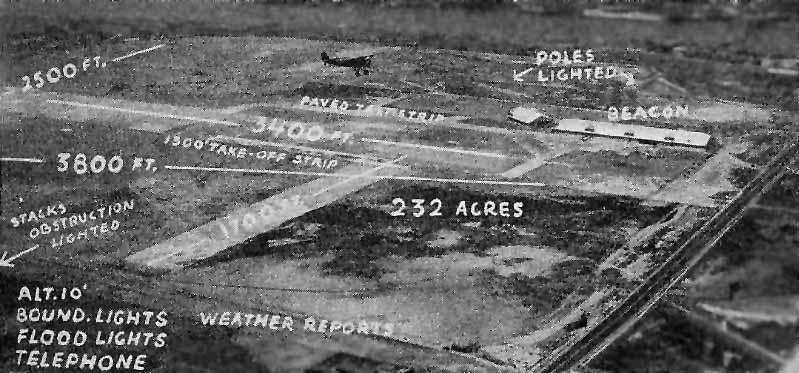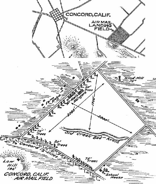 By coming in from the east over the hangar an unobstructed run of about 2,000' is obtained. North & south the field is rather narrow & somewhat rough. All supplies necessary for reservicing [sic] a ship may be obtained here."
