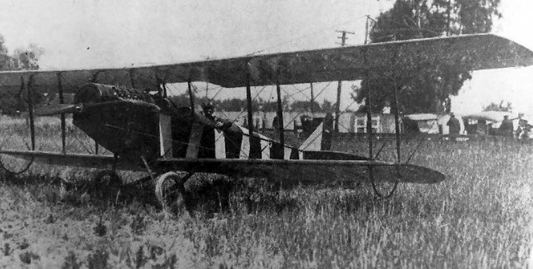 A 1921 photo of Earl Cooper's Curtiss Oriole biplane, presumably at Durant Field (source unknown).