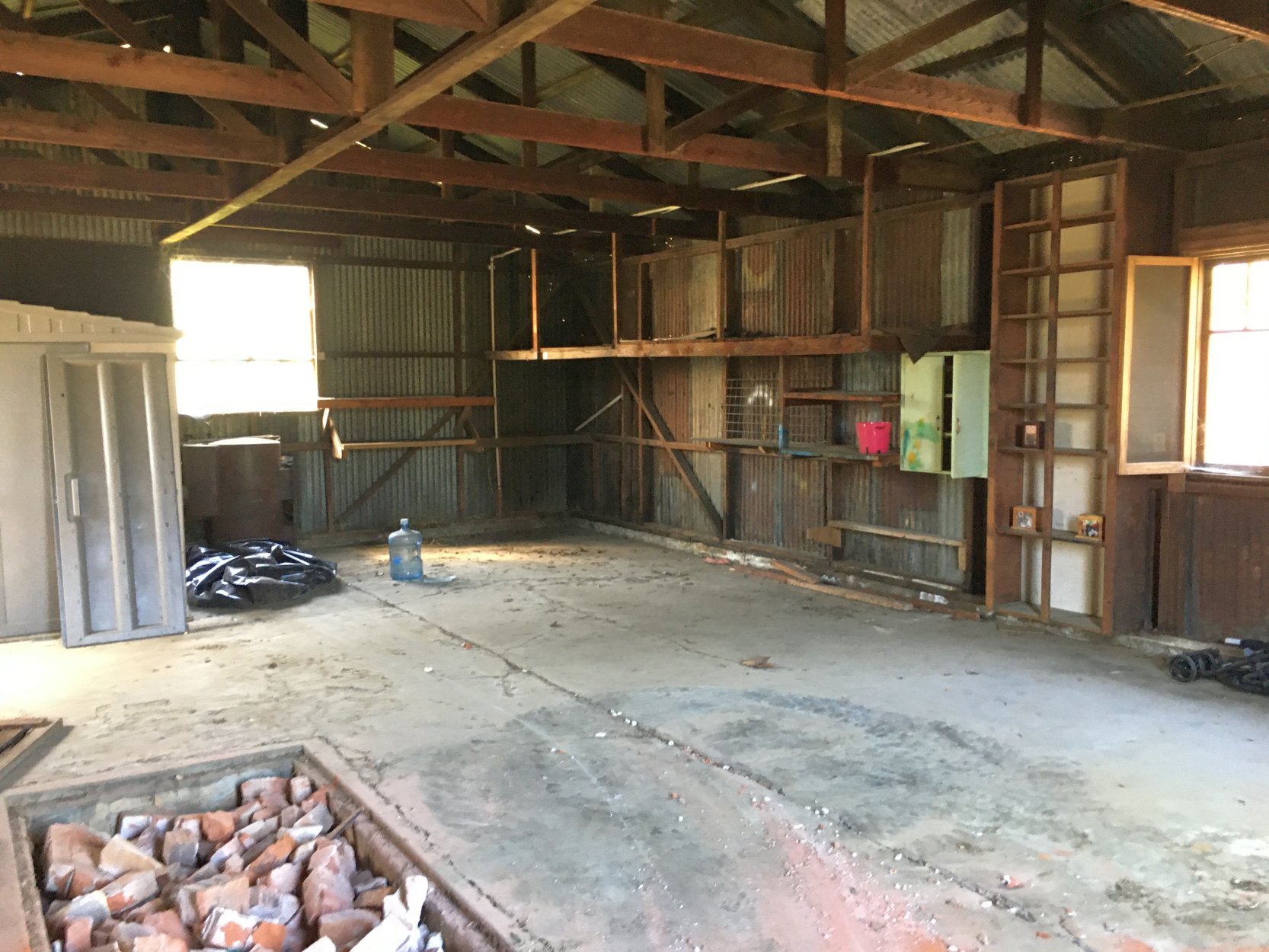 A 2022 photo by Harry Hoover of the interior of the Baldani Airfield hangar.