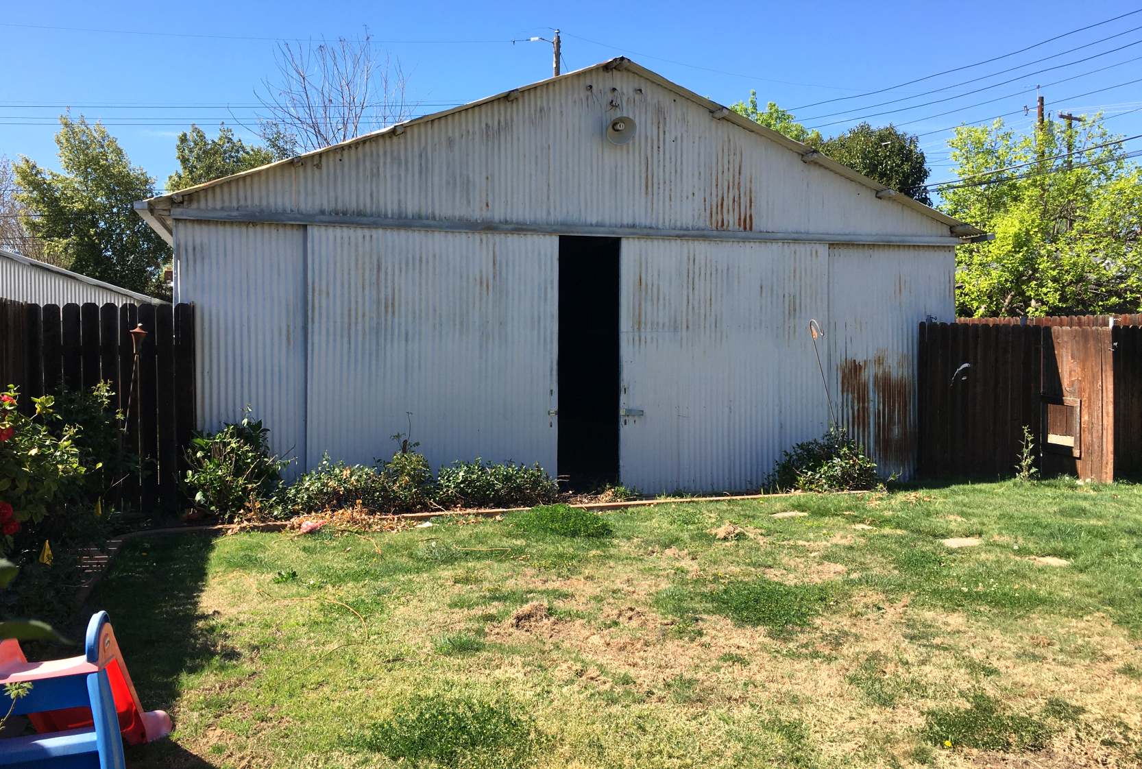Howdy Hoover reported, “For the last 75 years the hangar has been hidden behind a house in a deep lot.