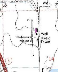 The 1995 USGS topo map depicted Natomas Airport as having a single north/south runway, with 3 small buildings along the east side.