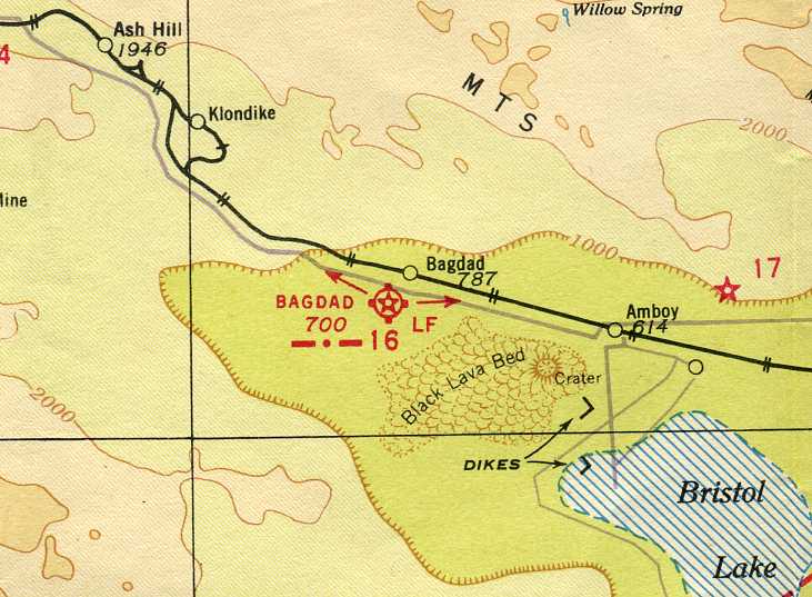 The site of the Bagdad Intermediate Field is located south of the intersection of National Trails Highway & Bagdad Way.