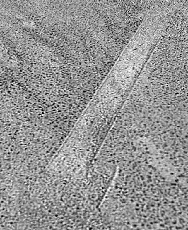 A 2008 photo by Charles Irvin looking along what was presumably the oiled runway surface at the Bagdad Airfield site.