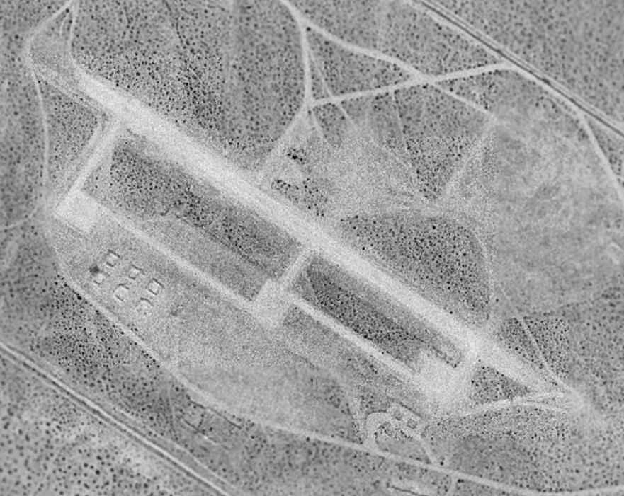 appears to show that the airfield had both a primary runway (oriented northwest/southeast)