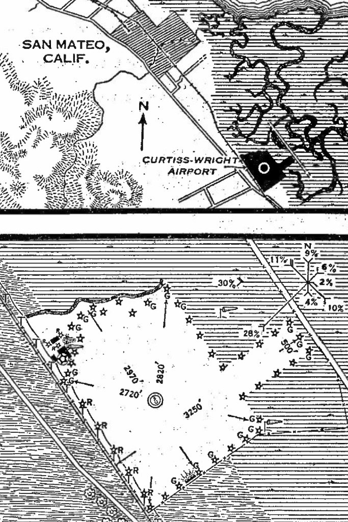 San Carlos Airport, as depicted on the 1929 Landing Fields of the Pacific West (courtesy of Jonathan Westerling).
