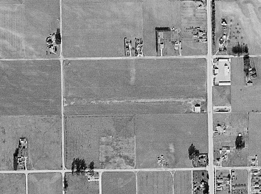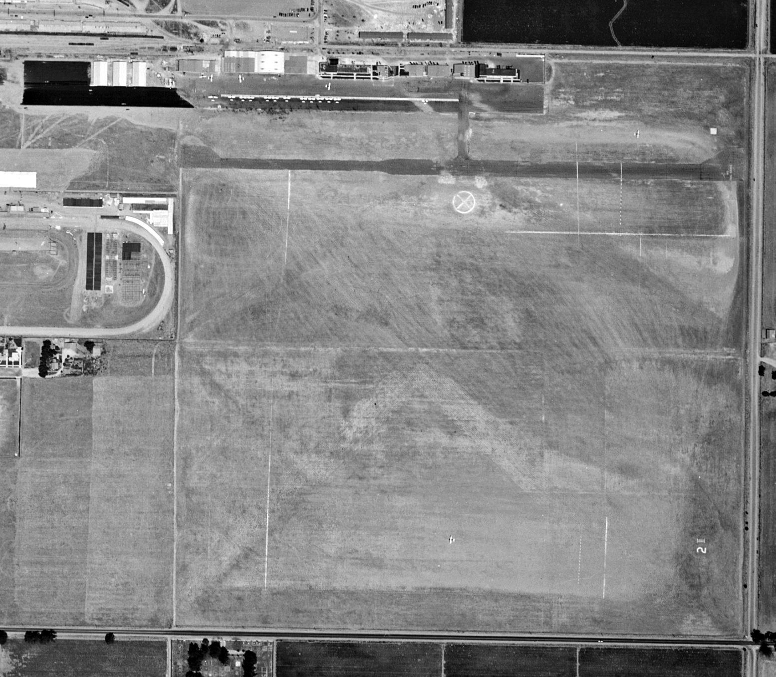 A circa 2006 aerial view looking north shows the unmistakable signs of a former airport,