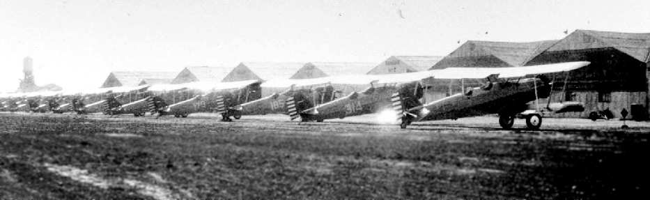 A circa 1940s photo looking southwest along Hancock Field depicted a Douglas DC-3 & several othr hangar parked on the north side.