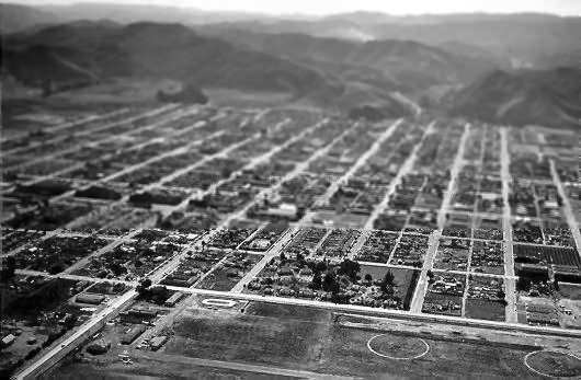 A 1967 aerial view showed Machado Airfield had been covered by the new 101 Freeway, with all traces having been erased of the little airfield.