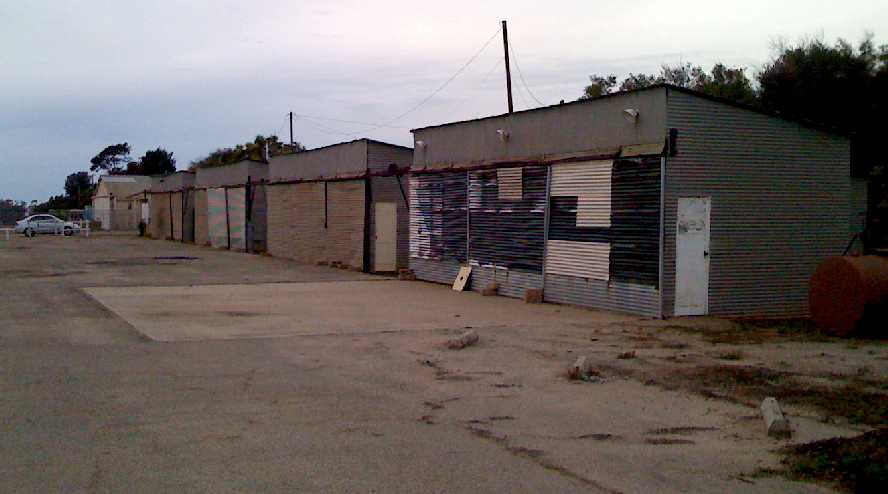 A 2003 photo by Tim Tyler of former hangars which remain at the site of Hancock Field.