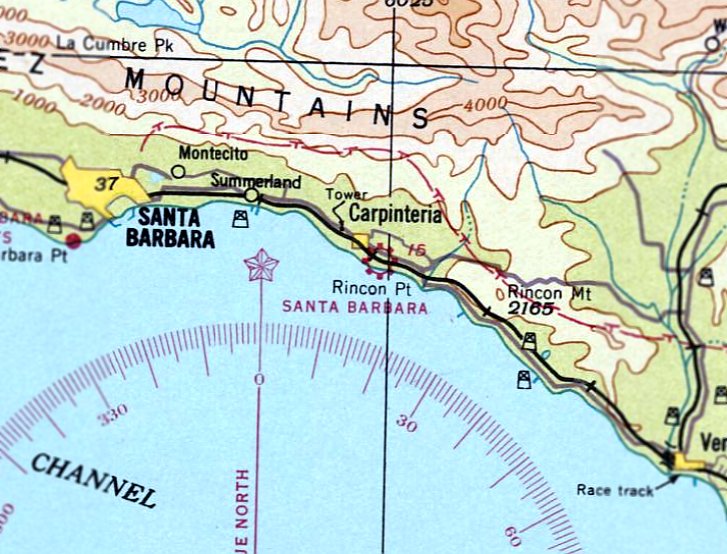 The Santa Barbara Airport in Carpinteria was no longer depicted on the January 1938 LA Sectional Chart.