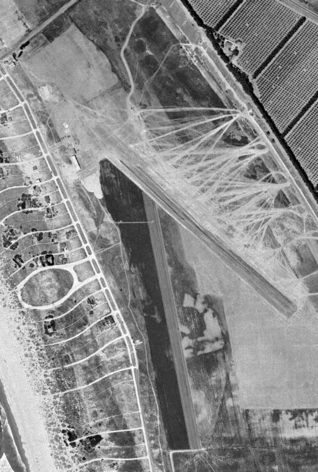 The 1994 USGS aerial photo of the site showed that it had been densely redeveloped with housing, and not a trace remained of the former airport.