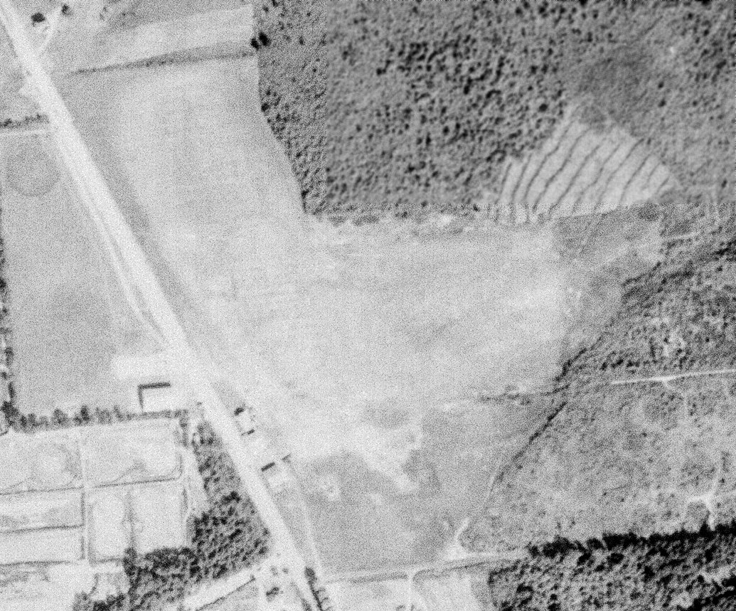 A 1955 aerial photo showed the remains of the original hangar, still not replaced with another structure.