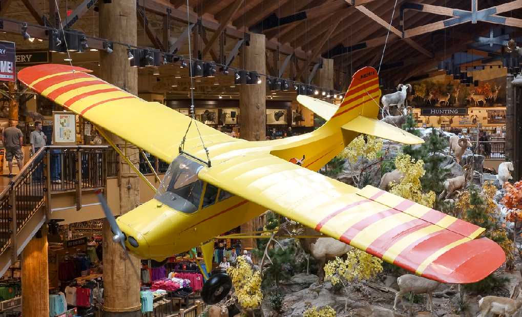 A 7/28/12 photo by Dan Vincent of an Aeronca 7AC Champion which hangs in the middle of the Cabela's sporting goods store