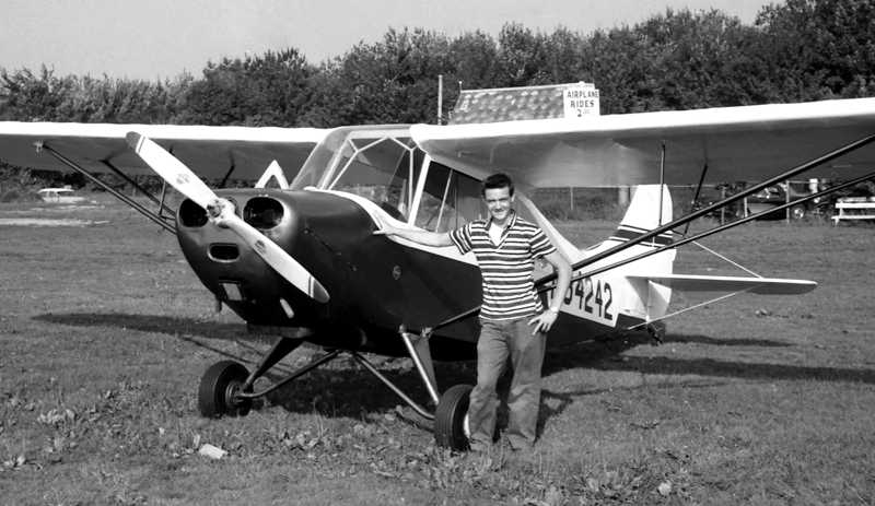 A 1958 photo (courtesy of Edd Weninger) of Edd Weninger with his Aeronca 7AC at Bethany Airport,