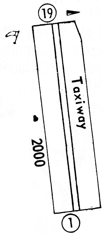 By late 1967 the south 400’ had deteriorated & the length was redesignated back to the original 2,400’. Still no taxiway, still no markings.