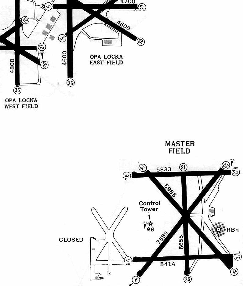 depicted Opa Lock West as having 2 paved runways, with the longest being 3,000'.
