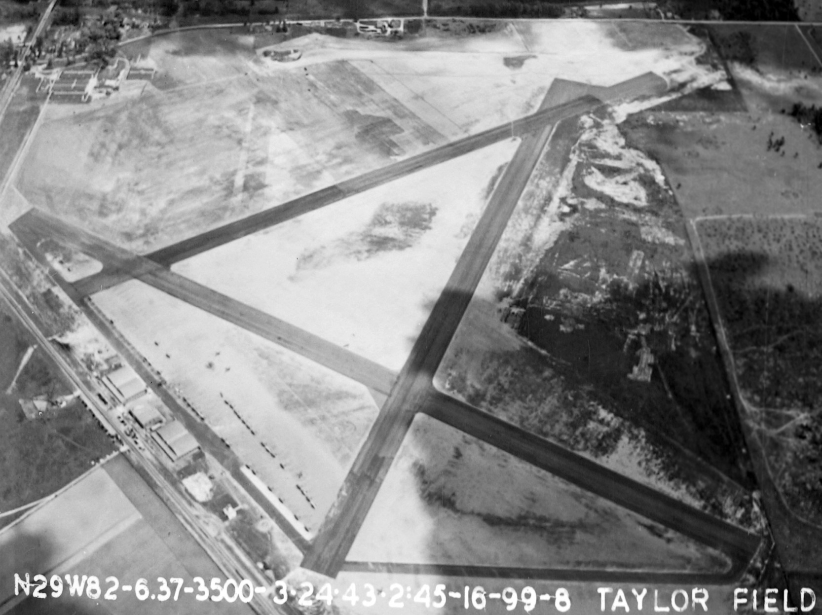A 3/24/43 aerial view looking east at Taylor Field (courtesy of the Air Force Historical Research Agency, via Brian Rehwinkel),